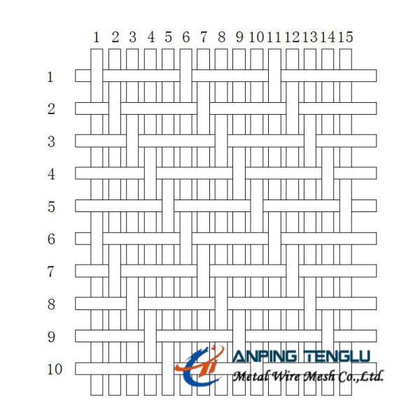 Each warp wire alternately goes under and above each one and four weft wires, and each weft wire goes under and above each one and four warp wires alternately.